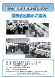 令和8年3月12日から14日まで東北学院大学五橋キャンパスにて令和8年電気学会全国大会が開催されます。